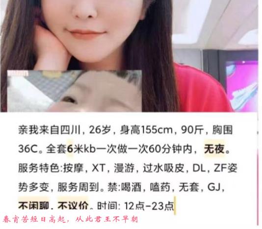 一个19岁妹子,临时缺钱做一段时间,过段时间可能就没有了,6米就可以两次,这样的地方也不好找了,妹子