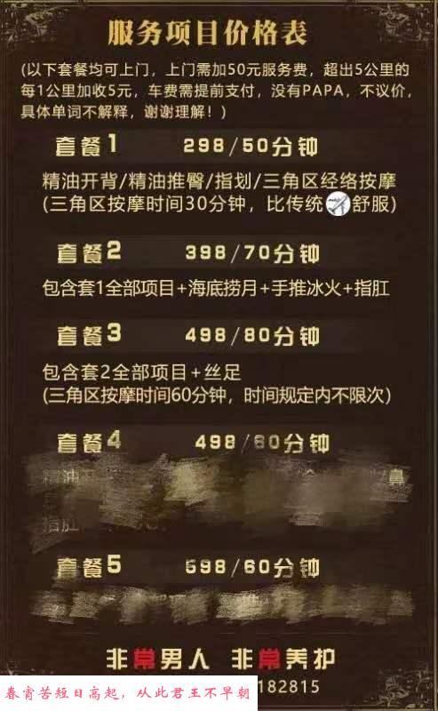 技师会不定期换,一般是两个,给我fw的是7号,先按摩,手法很专业,然后翻面抹上精油,然后欲仙欲死缴械